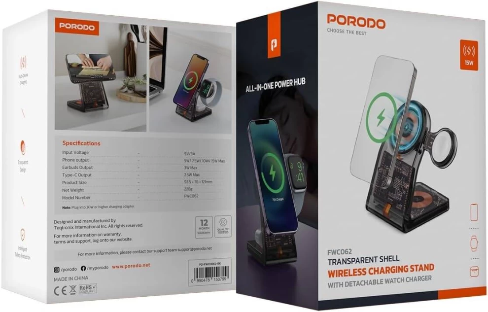 🔋 1 × Porodo Transparent Shell Wireless Charging Stand