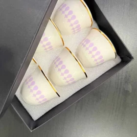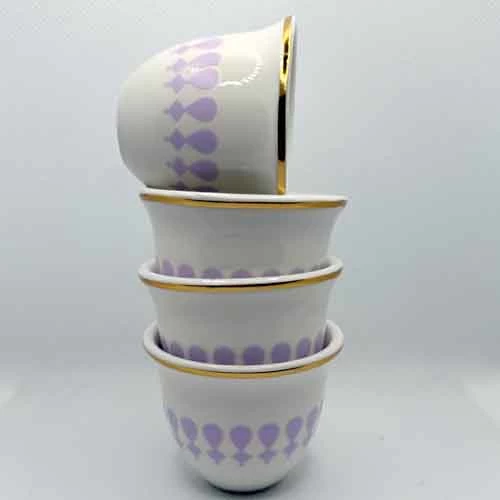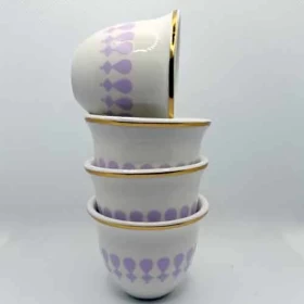 Crafted from high-quality porcelain featuring golden rims and soft purple details that blend tradition with modern elegance.