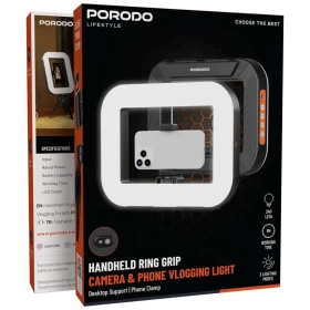 Porodo Lifestyle Handheld Ring Grip Camera & Phone Vlogging Light with Desktop Support