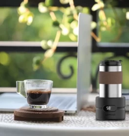 Powered by a 1200mAh rechargeable battery with USB-C charging, the device efficiently heats water and supports manual grinding for fresh coffee flavor every time. Its sleek silver design with durable materials makes it perfect for outdoor adventures or daily coffee on the go.